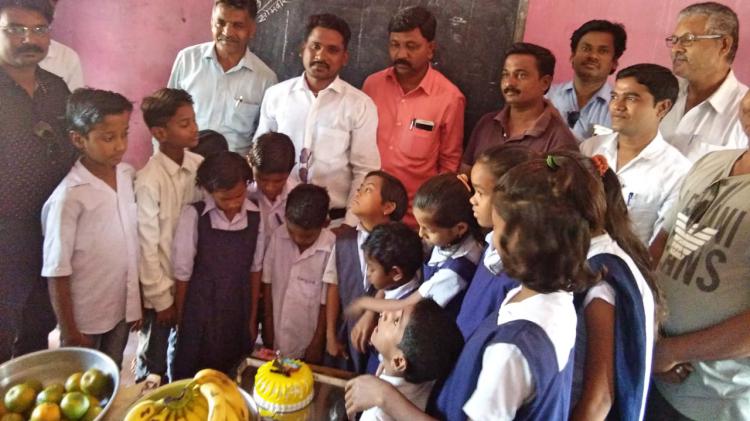 विद्यार्थ्यांसोबत शिक्षकाचा वाढदिवस साजरा