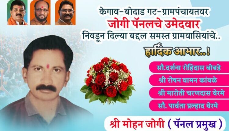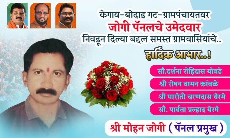 ऍडव्हटोरिअलवणीवार्ता केगाव-बोदाड ग्रामपंचायत निवडणुकीत जोगी पॅनलचा दणदणीत विजय सर्व विजयी उमेदवारांचे मनपूर्वक अभिनंदन By WaniBahuguni Desk On Jan 18, 2021 0 17 Share Jogi Pannelkegaon BodadLead Story 0 17 Share WhatsAppFacebookTwitter