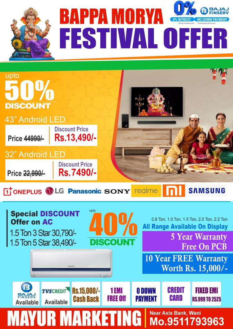 आता 10 दिवस करा ऑनलाईनपेक्षा कमी दरात खरेदी, मयूर मार्केटिंगमध्ये बाप्पा मोरया ऑफर सुरू