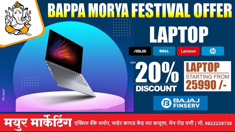 मयूर मार्केटिंगमध्ये सुप्रसिद्ध ब्रँडच्या लॅपटॉपच्या लेटेस्ट सिरिज आल्या असून त्या एकदा ग्राहकांनी नक्की बघण्यासारख्या आहे. यात असूस, डेल, लेनोवो, एचपी, एमएसआय, ऍप्पल इत्यादी ब्रँडच्या वस्तू विशेष म्हणजे या ब्रँडवर 20 टक्के पर्यंतचे डिस्काउंट दिले जाणार आहे.