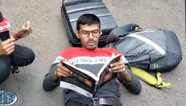 जितेंद्र कोठारी, वणी : दिवाळीत गावी येण्यासाठी मित्रासह दुचाकीवर बसून स्टेशन जाणाऱ्या तरुणाची दुचाकी पोलिसांनी अडविली. गाडीचे कागदपत्र ,ड्रायव्हिंग लायसन्स आणि ट्रेन रिजर्वेशनचे तिकीट दाखवूनही पोलिसांनी दुचाकी सोडली नाही. अखेर ज्या ट्रेनमध्ये तो बसणार होता ती निघून गेली. पुणे पोलिसांच्या कारवाई विरोधात त्या तरुणाने चक्क येथील रस्त्यावर झोपुन अभ्यास करण्याचे आंदोलन सुरु केले. राहुल शामराव धांडे असे या तरुणाचे नाव असुन तो वणी तालुक्यातील रासा गावाचा रहिवासी आहे.