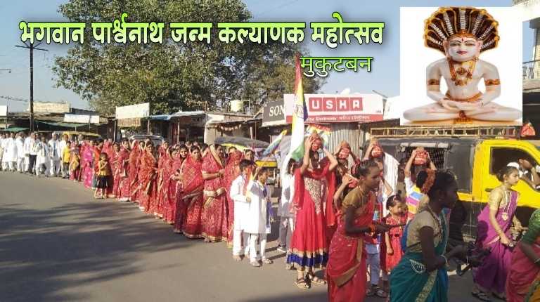श्री वर्धमान स्थानकवासी जैन श्रावक संघ मुकुटबन व भारतीय जैन संघटना यवतमाळ यांच्यातर्फे पार्श्वनाथ जन्म कल्याणक महोत्सवचे आयोजन करण्यात आले होते. सकाळी 8 वाजता महावीर भवन येथून शोभायात्रा  काढण्यात आली. मुलींच्या लेझिम पथकासह निघालेल्या शोभायात्रेमध्ये  मुकूटबन, अडेगाव, वणी, मोहदा, मार्की, शिंदोला, कुंभा, पांढरकवडा, यवतमाळ, नागपूर येथील शेकडो जैन महिला पुरुष सहभागी झाले होते. रैलीमध्ये जैन धर्म की जय जयकार, महावीर का क्या संदेश, जिओ ओर जीने दो व इतर घोषणेने मुकूटबन नगरी दुमदुमली होती. शहरातील विविध मार्गातून मार्गक्रमण करीत शोभायात्रा  9.30 वाजता परत महावीर भवन येथे पोहचली.