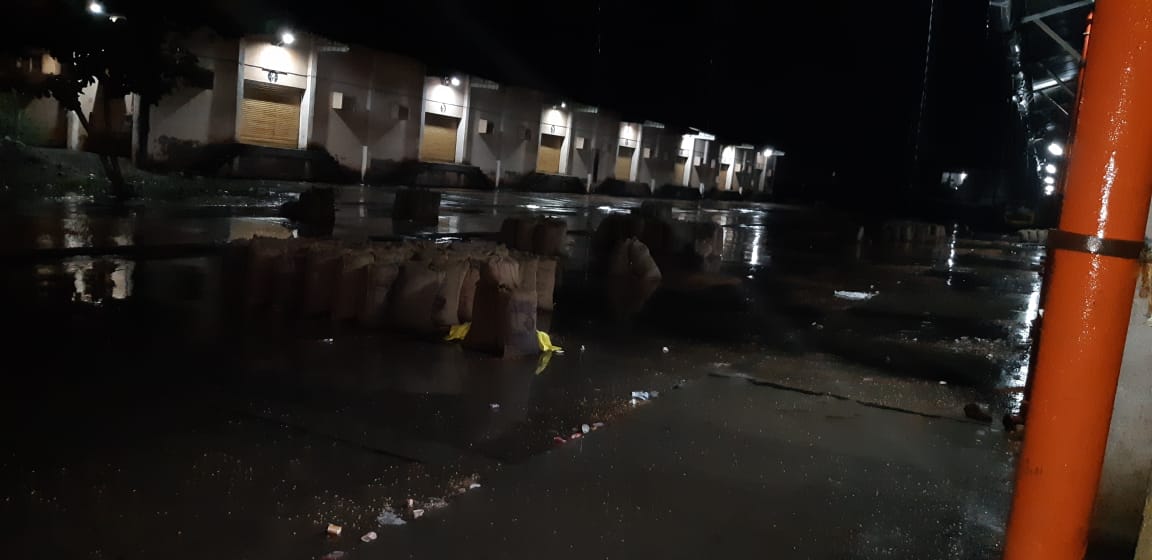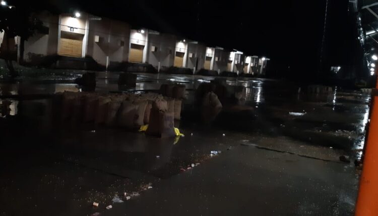 शनिवारी दिवसभर उकाडा असल्यामुळे सायंकाळी ढगाळ वातावरण झाले होते. परंतु मध्यरात्रीनंतर अचानक विजेच्या कडक्यासह जोरदार पावसाची सुरुवात झाली. पाऊस सुरू होताच धान्य व्यापारी निखिल केडीया व पियुष अग्रवाल रात्री 2.30 च्या सुमारास बाजार समितीत पोहचले व उघड्यावर पडलेले पोत्यांवर बाजार समितीतील दोन कर्मचाऱ्यांच्या सहाय्याने ताडपत्री झाकण्यास सुरू केले. मात्र तो पर्यंत केडीया, अग्रवाल व इतर व्यापाऱ्यांचे अंदाजे 700 ते 800 पोते तूर, चना व सोयाबीन पाण्यात भिजले होते.