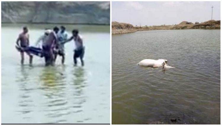 दगडी खाणीच्या खड्ड्यात बैलबंडी कोसळली
