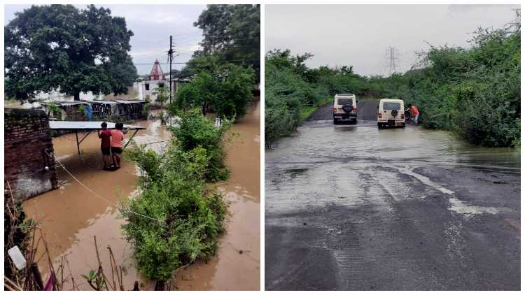 सावर्ला गावाच्या एक किलोमीटर अंतरावर पुराचे पाणी पोहोचले आहे.उकणी गावात शिरलेले पाणी व उकण-अहेर मार्गावर साचलेले पाणी