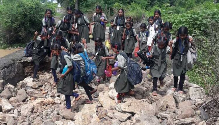 मारेगाव ( कोरंबी) येथे गावातून शाळेकडे जाणारा एकमेव पूल आहे. रस्त्यावरील पूल परवा अति पावसामुळे वाहून गेला. शाळेत जाण्यासाठी विद्यार्थ्यांना अशी कसरत करीत शाळा गाठावी लागते. सोबत या रस्त्यावर गावातील घाण सांडपाणी वाहते. हे घाण पाणी ओलांडून मुलांना शाळेत यावे लागते. या दोन्ही बाबीची पूर्तता करण्यात यावी अशी मागणी पालकांनी केली आहे.