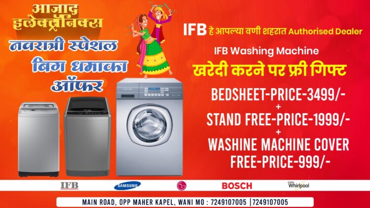 विवेक तोटेवार, वणी: शहरातील आझाद इलेट्रॉनिक्स (माहेर कापड केंद्र समोर, मार्केट रोड) तर्फे नवरात्री स्पेशल धमाल ऑफर लॉन्च करण्यात आली आहे. यात प्रत्येक इलेक्ट्रॉनिक्स वस्तू व होम अप्लायन्सेसवर घसघशीत सूट देण्यात येणार आहे. सोबतच या वस्तूंसोबत होम थिएटर, ब्लूटूथ स्पिकर, हेडफोन (फिलिप्स) यातील एक वस्तू मोफत गिफ्ट दिली जाणार आहे.* ही ऑफर 19 ऑक्टोबरपासून 26 ऑक्टोबरपर्यंत राहणार आहे. ही ऑफर मर्यादित काळापुरती असल्याने त्वरा करा असे आवाहन करण्यात आले आहे.