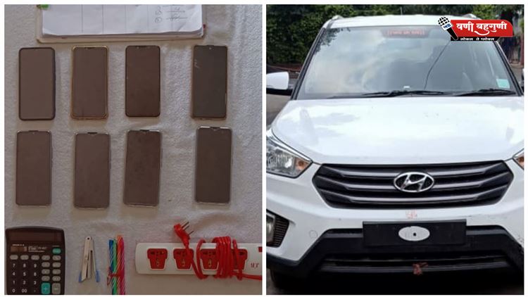 पोलिसांना आरोपींकडून रोख 1250 रुपये, 8 मोबाईल हँडसेट किंमत 69000 रु., जुगार खेळत असलेलं कागद,पेन, पेड तसेच एक क्रेटा कार (MH29-BC 2346) किंमत 9 लाख असे एकूण 9,70,000 रु. चा मुद्देमाल जप्त केले.