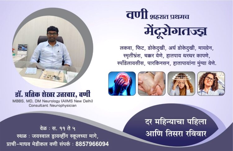 परिसरात न्युरोफिजिशियन नसल्याने आपल्या परिसरातील रुग्णांना नागपूर येथे जाऊन उपचार करावा लागतो. यात रुग्णांचा वेळ तर जातोच शिवाय यात जाण्यायेण्याचा अऩावश्यक खर्चही सहन करावा लागतो. मात्र वणीचे सुपुत्र म्हणून परिसरातील रुग्णांना योग्य तो उपचार मिळावा यासाठी डॉ. प्रतिक उत्तरवार आपल्या शहरात वैद्यकीय सेवा देतात. तरी वणी, मारेगाव व झरी तालुक्यातील मेंदूरोगाच्या आजाराने ग्रस्त रुग्णांनी या रविवारी जयस्वाल ड्रायव्हिंग स्कूलच्या मागे प्राची-माधव मेडिकल येथे भेट द्यावी.