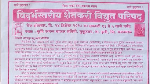 शासनाकडून शेतकऱ्यांच्या कृषीपंपाना सवलतीच्या दरात वीज पुरवठा करण्याकरिता जे अनुदान दिल्या जाते त्या अनुदानाचा हिशोब शेतकऱ्यांना माहीत होऊ देत नाही. उलट शेतकऱ्यांना जास्तीचे बिल भरावे लागत आहे ज्यामुळे शेतकऱ्याचे आर्थिक मोठे नुकसान होत आहे. वरील सर्व शेतकऱ्यांच्या समस्याचे निराकरण करण्याच्या तसेच शासनाचे लक्ष केंद्रित करून शासनाने याकडे त्वरित उपाययोजना कराव्या याकरिता सर्व शेतकरी बांधवानी एकत्र येऊन परिषदेच्या माध्यमातून लढा देऊन व सर्व समस्या ठरावात घेऊन ठराव पास करन शासनाला सादर करणार आहे.