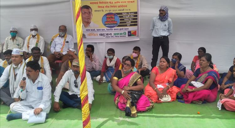 तहसील कार्यालयासमोर वंचित बहुजन आघाडीचे धरणे आंदोलन