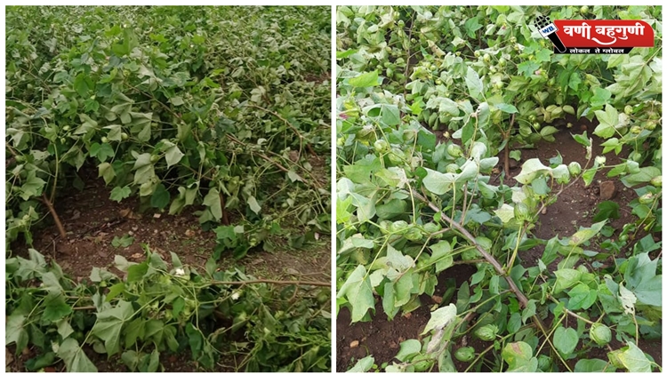 परिसरात शनिवार रात्री अचानक आलेल्या वादळी पावसाने मार्की, शेकापूर, पांढरकवडा (ल), मांगली, पवनार, अर्धवन आदी गावातील शेतकऱ्यांच्या हजारो हेक्टर वरील कपाशी पीक उद्ध्वस्त झाले आहे. सोयाबीन पिकांच्या शेंगांचीही बऱ्याच प्रमाणात झाडणी झाली. तर तुरीचेही मोठ्या प्रमाणात नुकसान झाले आहे. त्यामुळे शेतकरीवर्गांचे मोठ्याप्रमाणात आर्थिक नुकसान झाले आहे.