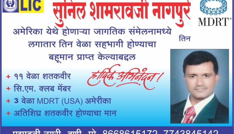 सुनिल नागपुरे यांची अमेरिकेत होणा-या MDRT कॉन्फरन्ससाठी निवड