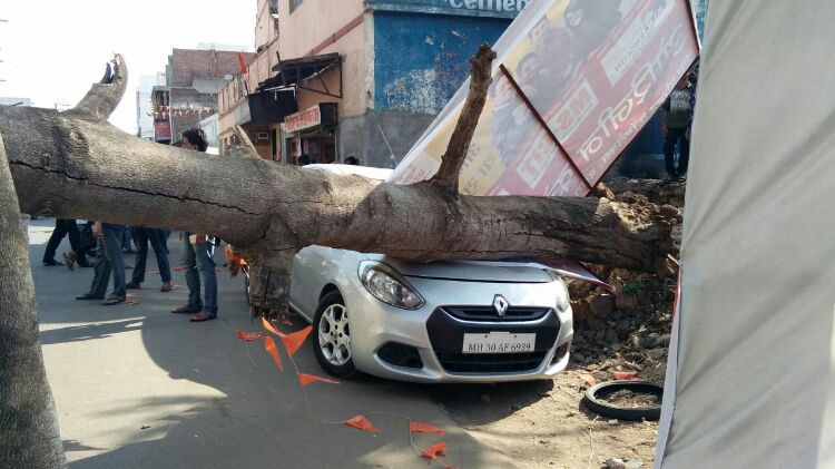 वणीत त्या चौकात रामनावमीनिमित्त स्वागत द्वार उभारण्यात आले आहे. त्या स्वागत द्वारावर झाड कोसळल्याने मोठा अनर्थ टळला. कारण झाड त्या स्वागत द्वाराला अडकले. जर स्वागत द्वाराला झाड अडकले नसते तर एखादी मोठी घटना ही घडू शकली असती.