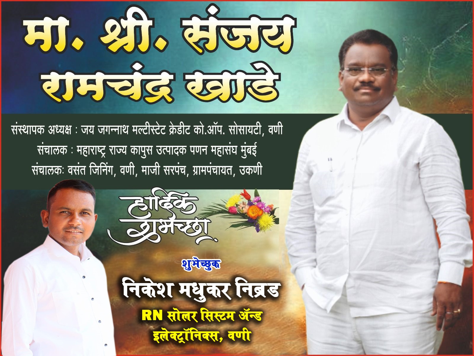 ऍडव्हटोरिअलवणीवार्ता दातृत्वाचे धनी व समाजकारणी संजय खाडे यांना वाढदिवसाच्या हार्दिक शुभेच्छा शुभेच्छुक - निकेश मधुकर निब्रड, RN सोलर सिस्टिम & इलेक्ट्रॉनिक्स, वणी By WaniBahuguni Desk On May 23, 2024 18 Share Lead StorySanjay Khade 18 Share WhatsAppFacebookTwitter