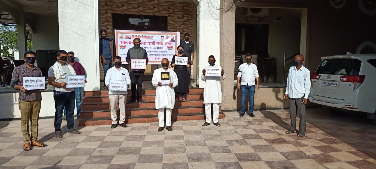 जब्बार चीनी, वणी: कोरोना काळात राज्य सरकार अपयशी ठरल्याचा आरोप करत महाराष्ट्र भाजपच्या वतीने राज्यभरात महाराष्ट्र_बचाव आंदोलन करण्यात आलं. ‘आपलं अंगण, हेच रणांगण’ असं ब्रीदवाक्य घेऊन गावागावात हे आंदोलन करण्यात आलं. वणीतही आमदार संजिवरेड्डी बोदकुरवार यांनी त्यांच्या कुटुंबासह या आंदोलनात सहभाग घेतला. आज कोरोणा ह्या भयंकर महारोगाच्या नियोजनात दिशाहीन व प्रत्येक बाबतीत महाविकास आघाडी सरकार अयशस्वी ठरत असल्याचा त्यांनी आरोप केला.
