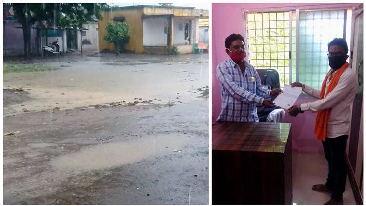 साचलेल्या पाण्याचे विल्हेवाट त्वरित करून गावकऱ्यांच्या आरोग्याचा विचार करावा अशा आशयाचे निवेदन युवा सेनेचे चेतन बरशेट्टीवार यांच्यासह गावकऱ्यांनी ग्रामपंचायत सचिव गणेश मुके यांना दिले.
