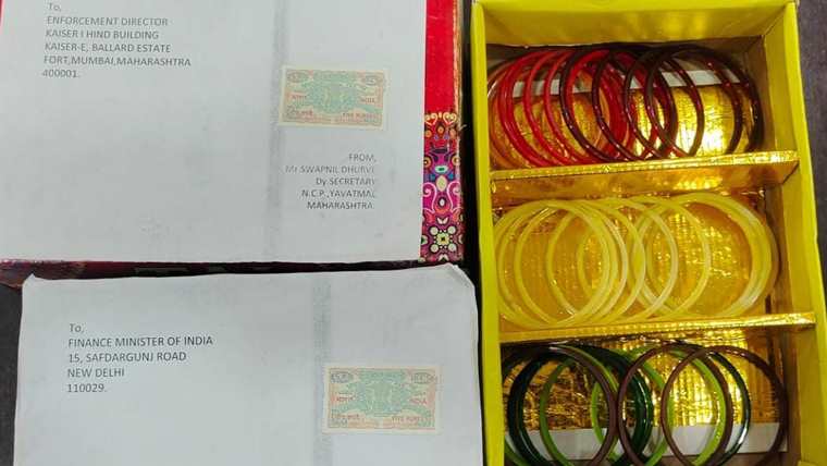 राष्ट्रवादी कॉंग्रेस पक्षाकडून ईडीच्या अधिकाऱ्यांना बांगड्याची भेट