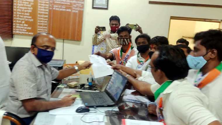 ईडीच्या अधिकाऱ्याना पोस्टामार्फत बांगड्याचा डब्बा व उपविभागीय अधिकारी यांना निवेदन देताना राष्ट्रवादी कॉंग्रेस पक्ष जिल्हा सरचिटणीस स्वप्नील धुर्वे, सुर्यकांत खाडे, विजय नगराळे, तालुकाध्यक्ष हेमंत गावंडे, शहराध्यक्ष मनोज वाकटी, राजु उपरकार, गुणवंत टोंगे, रामकृष्ण वैद्य, वैशाली तायडे, नागभीडकर, प्रणय बल्की, बंटी प्रेमकुंटावार, सचिन वालदे, जयस्वाल, सचीन चव्हाण, प्रणय बल्की, अनिकेत थेरे, समीर भादंकर आदी कार्यकर्ते उपस्थित होते.