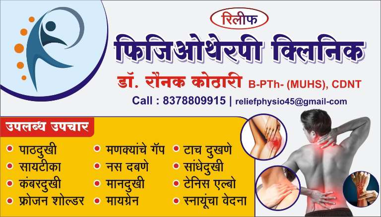 डॉ. रौनक कोठारी (फिजिओेथेरपीस्ट)        संचालक : रिलीफ फिजिओथेरपी क्लिनिक, वणी
