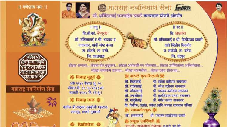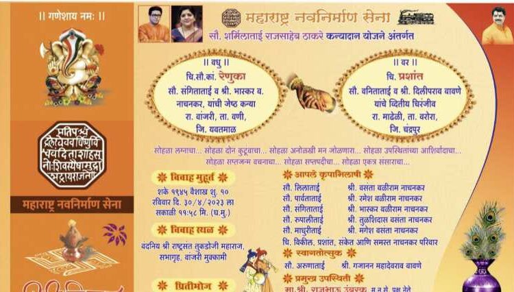 शुभमंगल – शर्मिलाताई राजसाहेब ठाकरे कन्यादान योजने अंतर्गत 30 एप्रिल रोजी विवाह सोहळा