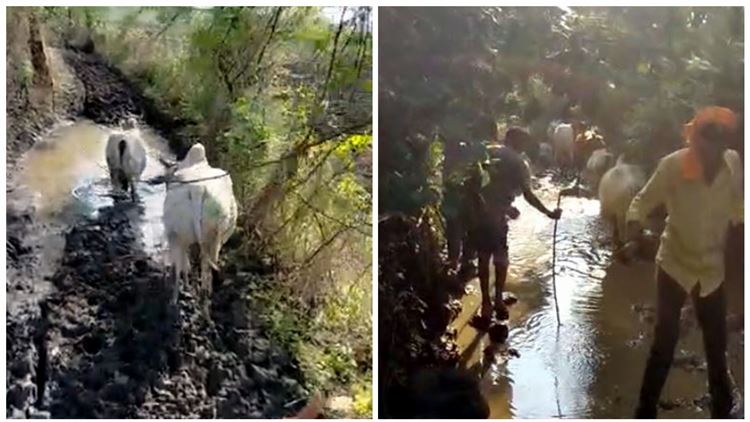 बोर्डा येथे शेतक-यांचा चिखलातून वाट तुडवत प्रवास