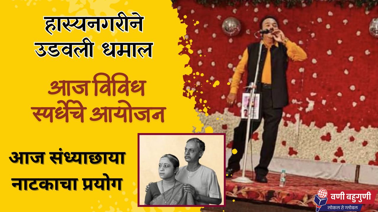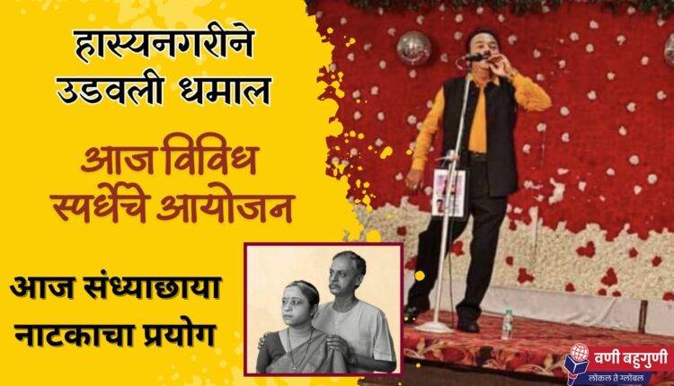 बहुगुणी डेस्क, वणी: शनिवारी दिनांक 24 ऑगस्ट व रविवारी दिनांक 25 ऑगस्ट रोजी जन्माष्टमी निमित्त वणीकरांसाठी विविध स्पर्धेचे आयोजन करण्यात आले आहे. शुक्रवारी संध्या. 7 वा. श्री विनायक मंगल कार्यालय येथे सुप्रसिद्ध स्टँडअप कॉमेडियन व मिमिक्री आर्टिस्ट प्रा. महेंद्र गणपुले यांचा हास्यनगरी हा एकपात्री नाट्य प्रयोग झाला. महेंद्र गणपुले यांच्या विविध विनोदाने व मिमिक्रीने एकच धम्माल उडवली. आज शनिवारी दिनांक 24 ऑगस्ट रोजी संध्या 6 वा. श्री विनायक मंगल कार्यालय येथे सुप्रसिद्ध नाटककार जयवंत दळवी लिखित ‘संध्याछाया’ या दोन अंकी नाटकाचा प्रयोग होणार आहे. स्पर्धेत व नाटकाच्या प्रयोगाला मोठ्या संख्येने सहभागी व्हावे, असे आवाहन ऍड कुणाल विजय चोरडिया यांनी केले आहे.