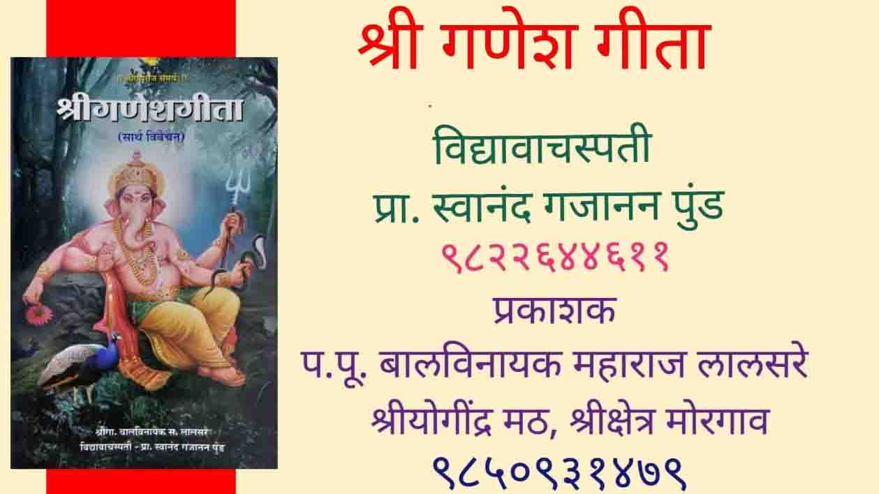 भगवान श्री गणेशां कडे पाहण्याची अद्वितीय तात्विक वृत्ती हवी असेल आणि गीता तत्वज्ञान समजून घ्यायचे असेल तर सगळ्यात सोपा मार्ग आहे श्री. स्वानंद पुंड निरूपित श्री गणेश गीता.