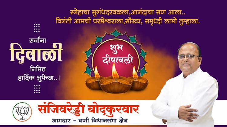 वणी विधानसभा क्षेत्रातील सर्व जनतेला दिवाळीच्या हार्दिक शुभेच्छा- आ. संजीवरेड्डी बोदकुरवार