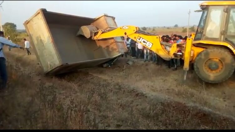 टिप्पर पलटी  झाल्याने एक जागीच ठार, दोन जखमी