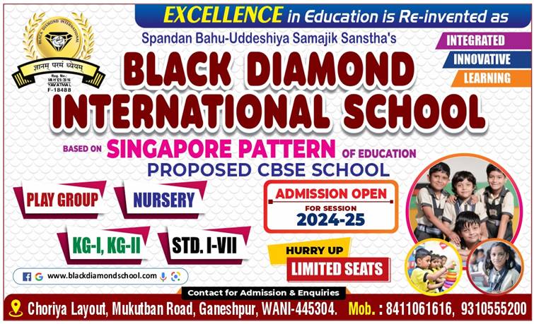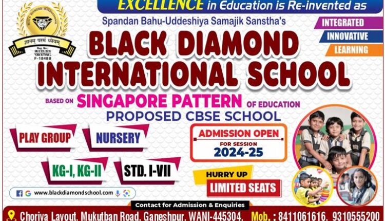 वणीतील ब्लॅक डायमंड इंटरनॅशनल स्कूलमध्ये प्रवेश सुरू, अवघ्या काही जागा शिल्लक