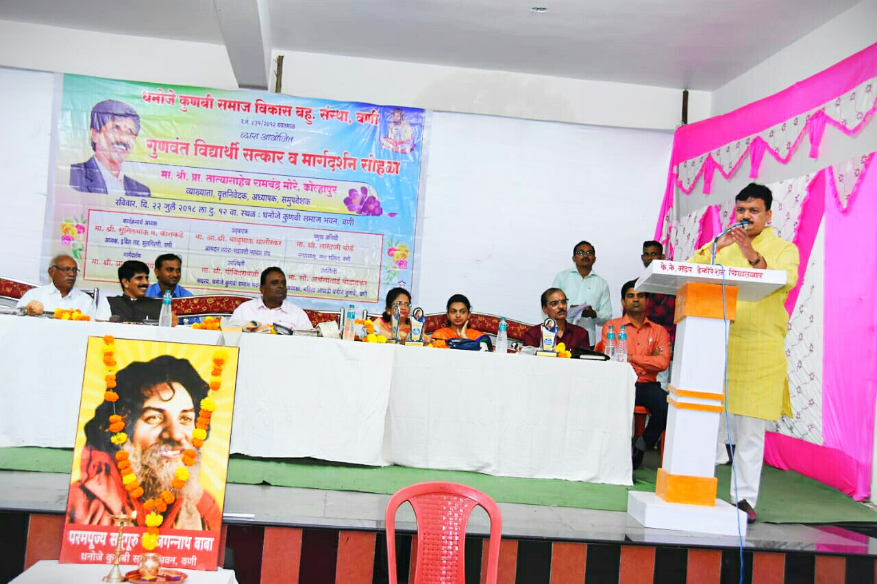 बहुगुणी डेस्क, वणी: धनोजे कुणबी समाज विकास बहु. संस्थेने ” गुणवंत विद्यार्थी सत्कार व मार्गदर्शन सोहळा घेतला. या कार्यक्रमाचे अध्यक्ष सुनील कातकडे, उद्घाटक आ. बाळू धानोरकर, प्रमुख मार्गदर्शक म्हणून प्रसिद्ध वक्ते तात्यासाहेब मोरे, तसेच विजय मुसळे, प्रमुख पाहुणे म्हणून अर्चना बोदाडकर, गोविंद थेरे, वामनराव कूचनकर, विनायक बोढाले, हे मान्यवर उपस्थित होते याप्रसंगी मुख्याधिकारी निकिता ठाकरे यांचा सत्कार करण्यात आला.