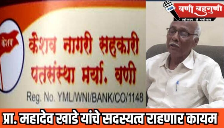विवेक तोटेवार, वणी : येथील केशव नागरी सहकारी पतसंस्थेचे सदस्य प्रा. महादेव खाडे यांचे सदस्यत्व कायम ठेवण्याचा निर्णय विभागीय सह निबंधक (सहकारी संस्था) अमरावती यांनी दिला आहे. जिल्हा उप निबंधक, यवतमाळ यांच्या आदेशाविरुद्ध प्रा. खाडे यांनी विभागीय सह निबंधक यांच्याकडे अपील दाखल केली होती. प्रा. खाडे यांच्या अपिलीवर सुनावणी करून विभागीय सह निबंधक यांनी 26 एप्रिल 2023 रोजी निर्णय दिला. केशव नागरी सहकारी पतसंस्थेचे सदस्य प्रा. महादेव खाडे यांनी याबाबत 26 जून रोजी येथील शासकीय विश्रामगृहात पत्रकार परिषद घेऊन माहिती दिली.