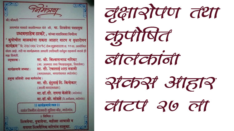 बहुगुणी डेस्क, मारेगावः शिवसेना पक्षप्रमुख उद्धव ठाकरे यांचा वाढदिवसानिमित्त शिवसेना , युवासेना, महिला आघाडी तथा मारेगाव शिवसैनिकांनी विविध उपक्रम शुक्रवारी आयोजित केले आहेत. या अंतर्गत 27 जुलै शुक्रवारी सकाळी 11 वाजता मारेगाव येथील वसंत जिनिंग शेतकरी सुविधा केंद्र येथे कुपोषित बालकांना सकस आहार वाटप व वृक्षारोपण होणार आहे.