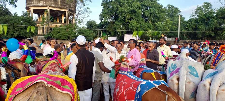 संध्याकाळी 5.30 वाजता शासकीय मैदानावर पोळा उत्सवाला सुरुवात झाली. आमदार संजीवरेड्डी बोदकुरवार, उपविभागीय अधिकारी डॉ. शरद जावळे, राजाभाऊ पाथ्रडकर, रवि बेलुरकर, प्रमोद निकुरे, श्रीकांत पोटदुखे यांची यावेळी प्रमुख उपस्थिती होती. शेतक-यांनी बैलांना सजवून आणले होते. मान्यवरांच्या हस्ते बैलजोडीची पूजा करण्यात आली. यावेळी शेतक-यांचा टोपी, दुपट्टा आणि नारळ देऊन सन्मान करण्यात आला. पूजेनंतर शेतक-यांना भोजारा देण्यात आला.