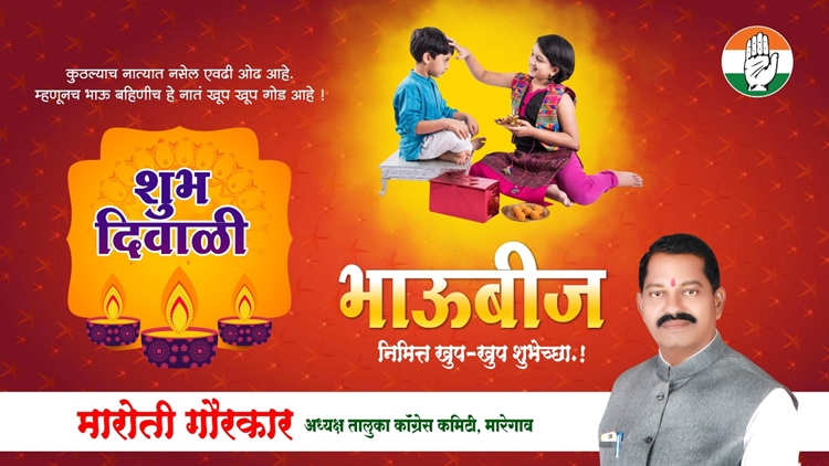 मारोतराव गौरकार यांच्यातर्फे मारेगाव तालुकावासीयांना दिवाळी व भाऊबिजेच्या हार्दिक शुभेच्छा