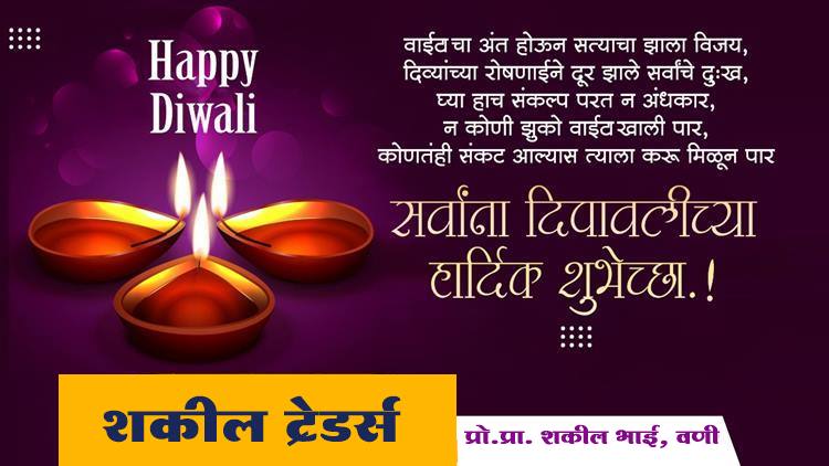 ऍडव्हटोरिअलवणीवार्ता शकील ट्रेडर्स, गोकुल नगरतर्फे सर्वांना दिवाळीच्या हार्दिक शुभेच्छा… शुभेच्छुक: शकील भाई, वणी By WaniBahuguni Desk On Oct 26, 2022 10 Share Lead StoryShakeel Traders 10 Share WhatsAppFacebookTwitter