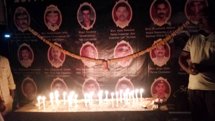 ज्योतिबा पोटे, मारेगाव: मारेगाव येथील जिजाऊ चौकात मारेगावातील नागरिकांच्या वतीने २६/११ शहिद दिना निमित्त आदरांजलीपर कार्यक्रम आयोजित करून शहिदांना आदरांजली वाहण्यात आली. रविवारी संध्याकाळी साडे सहा वाजता मार्डी रोड स्थित जिजाऊ चौकात शहरातील नागरिकांनी मुंबई येथे अतिरेकी हल्ल्यात शहिद झालेल्या पोलिसांना आणि जवानांना आदरांजली वाहण्यात आली. यावेळी उपस्थितांनी मेनबत्ती प्रज्वलीत करण्यात आल्या होत्या.