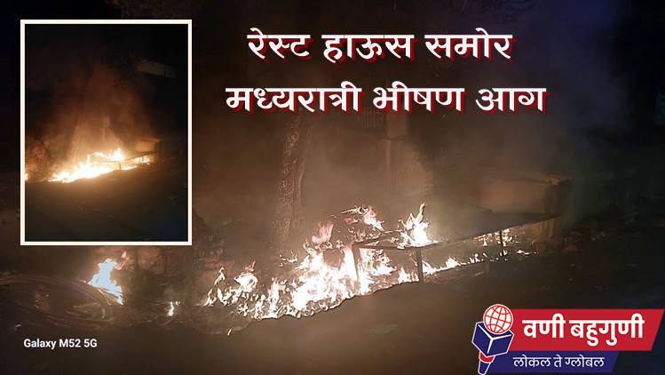 निकेश जिलठे, वणी: रेस्ट हाऊस समोर मध्यरात्री भीषण आग लागली. घटनास्थळाच्या बाजूलाच ट्रॅव्हल्स थांबलेल्या असतात. शिवाय याच्या बाजूलाच पेट्रोल पम्प आहे. याच वेळी रस्त्याने माजी नगराध्यक्ष तारेंद्र बोर्डे हे घरी परतत होते. त्यांच्या निदर्शनास ही बाब आल्याने मोठा अनर्थ टळला. या आगीत एक टेबल जळून खाक झाला तसेच रस्त्यावरील झाडाचे मोठे नुकसान झाले.