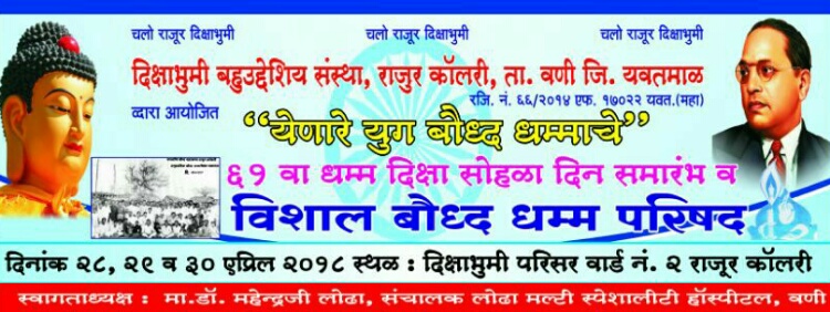 विश्वरत्न डॉ बाबासाहेब आंबेडकर यांनी नागपूरच्या दीक्षाभूमीवर प्रथम दीक्षा समारंभ 14 ऑक्टोबर 1956 ला पार पडला. संपूर्ण देशातील प्रमुख ठिकाणी समारंभ व्हावा ही त्यांची इच्छा होती या त्यान्वये लगेचच 16 ऑक्टोबर 1956 ला चंद्रपूर येथे दीक्षा समारंभ झाला तर तिसरा दीक्षा समारंभ वणी तालुक्यातील राजुर कॉलरी येथे आयोजित करण्यात आला होता. मात्र बाबासाहेबांच्या प्रकृती स्वास्थ्यामुळे तो कार्यक्रम तात्पुरता स्थगित करून सहा महिन्यानंतर बँ. राजाभाऊ खोब्रागडे यांच्या अध्यक्षतेखाली डॉ.भदन्त आनंद कौशल्यायन यांच्या हस्ते घेण्यात आला होता. त्यामुळेच दीक्षाभूमी संस्थेच्या वतीने दरवर्षी धम्मक्रांतीचा वारसा जपला जात आहे.