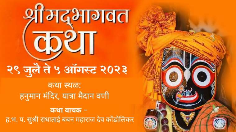 जितेंद्र कोठारी, वणी : यंदा श्रावण महिन्यात आलेल्या अधिक महिन्या निमित्त येथील यात्रा मैदान परिसरात हनुमान मंदिरात भागवत ज्ञानयज्ञ कथाचे आयोजन करण्यात आले आहे. श्री भागवत ज्ञानयज्ञ समिती तर्फे आयोजित या भागवत ज्ञानयज्ञ सप्ताहामध्ये श्री क्षेत्र कोंडोली, ता. मानोरा जिल्हा वाशिम येथील ह.भ. प. सुश्री राधाताई बबन महाराज देव कोंडोलिकर भागवत कथा वाचन करणार आहे.