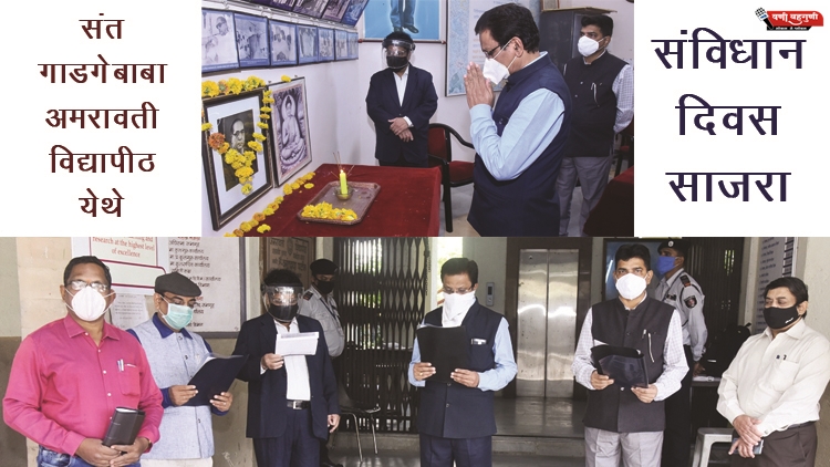 बहुगुणी डेस्क, अमरावती: संत गाडगे बाबा अमरावती विद्यापीठात 26 नोव्हेंबर हा भारतीय संविधान दिवस मोठ्या उत्साहात साजरा करण्यात आला. यावेळी कुलगुरू डॉ. मुरलीधर चांदेकर यांनी संविधानाच्या उद्देशिकेचे वाचन केले.