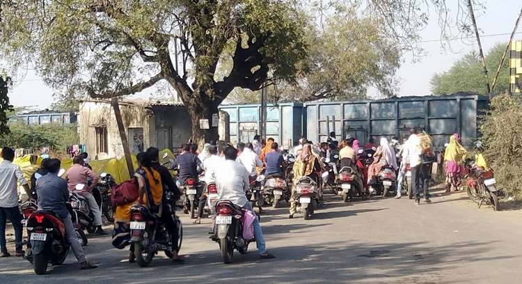 नांदेपेरा रोड रेल्वे क्रॉसिंगवर वाहतुकीचा खोळंबा