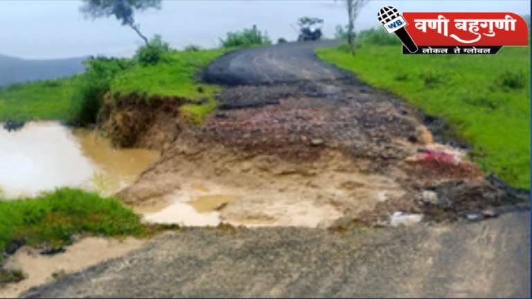 जितेंद्र कोठारी, वणी : तालुक्यातील नवेगाव ते शिरपूर मार्गावर नाल्यावरील रपटा पावसामुळे वाहून गेल्याने गावात येण्या जाण्याचा मार्ग बंद झाला आहे. रहदारीचा एकमेव मार्ग बंद झाल्याने तब्बल 180 लोकसंख्या असलेल्या गावातील नागरिक गावातच अडकले आहे. नवेगाव येथे शाळा नसल्यामुळे येथील विद्यार्थी दररोज शिरपूर येथे शाळेत ये जा करतात. तसेच गावातील अनेक शेतकरी व कामगार कामानिमित्त दररोज शिरपूर व वणी येथे जात असते. फक्त एकावर्षापूर्वी बांधण्यात आलेला हा डांबरी रस्ता पाण्यात वाहून गेल्याने रस्त्याच्या गुणवत्तेबाबतही प्रश्नचिन्ह उपस्थित होत आहे. सार्वजनिक बांधकाम विभागाने शिरपूर नवेगाव रस्त्याची तातडीने दुरुस्ती करावी. अशी मागणी नागरिकाने केली आहे.