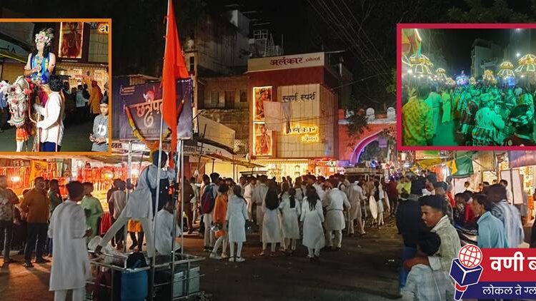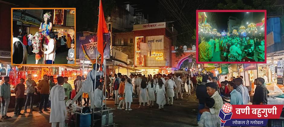 निकेश जिलठे, वणी: श्रीकृष्ण जन्माष्टमी निमित्त वणी शहरात निघालेल्या भव्य शोभायात्रेने वणीकरांच्या डोळ्याचे पारणे फिटले. ढोल ताशा, भजनी मंडळाच्या टाळ मृदंगाच्या गजरात पारंपरिक लोककला-लोकसंस्कृतीचे वणीकरांना दर्शन घडवत ही शोभायात्रा शहरातून निघाली. या शोभायात्रेत भाविकांचा उत्साह ओसंडून वाहत होता. नयनरम्य देखावे, कलापथक, रोशनाई, बँडपथक यांच्या साथीने निघालेल्या या शोभायात्रेने शहरवासीयांचे लक्ष वेधून घेतले. शिवतांडव व गोंडी ढेमसा नृत्य हे या रॅलीचे प्रमुख आकर्षण ठरले. ‘जय कन्हैया लाल की’च्या जयघोषाने संपूर्ण परिसर दणाणून गेला. गेल्या आठवड्यापासून वणीत श्रीकृष्ण जन्माष्टमी निमित्त विविध कार्यक्रमांचे आयोजन करण्यात आले होते. शोभायात्रेने जन्माष्टमी सप्ताहाची सांगता झाली. या संपूर्ण उत्सवाला वणीकरांनी भरभरून प्रतिसाद दिल्याबद्दल उत्सव समितीचे अध्यक्ष ऍड. कुणाल विजय चोरडिया यांनी वणीकरांचे आभार मानले.