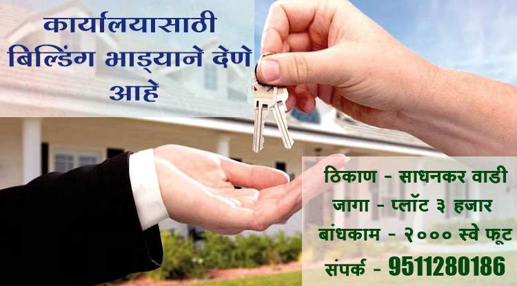बहुगुणी डेस्क, वणी: वणीतील साधनकर वाडी येथील डॉ. बल्की यांच्या दवाखान्यापासून अवघ्या हाकेच्या अंतरावर असलेली एक नवीन दोन माळ्याची (तळमजला व एक मजला) बिल्डिंग भाड्याने देणे आहे. सदर बांधकाम हे 2 हजार स्क्वेअर फुटाचे असून 3 हजार स्क्वेअर फुटाच्या प्लॉटवर हे बांधकाम आहे. हॉस्पिटल, बँक, सरकारी किंवा खासगी कार्यालयासाठी जागा भाड्याने देणे आहे. अधिक माहितीसाठी इच्छुकांनी 9511280186 या क्रमांकावर संपर्क साधता येणार आहे.