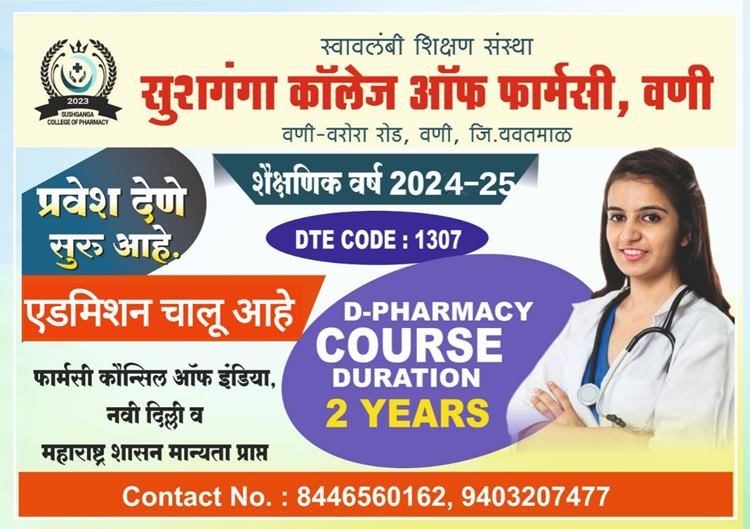 अधिक माहितीसाठी संपर्क – सुशगंगा कॉलेज ऑफ फार्मसी