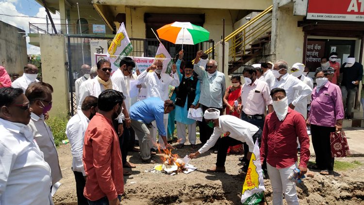 वणीत विजबिलाची होळी, विज वितरण कंपनीला निवेदन