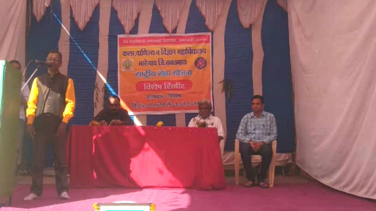या कार्यक्रमाच्या अध्यक्ष पदी राष्ट्रीय सेवा योजना शिबिराचे कार्यक्रम अधिकारी डॉ. संदीप केलोडे होते, तर प्रमुख अतिथी पत्रकार अशोक कोरडे, चिंचाळा येथील प्रतिष्ठित नागरिक रमेश चिकटे होते. संचालन पवन या विद्यार्थ्यांने केले. तर आभार अजिंक्य कोरडे यांनी मानले,