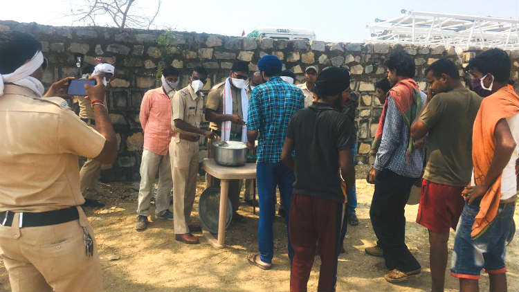 सुशील ओझा, झरी: मुकूटबन येथील एका कंपनीत लॉकडाऊनमुळे मध्यप्रदेश येथील ट्रक अडकले आहेत. सध्या हॉटेल ,धाबे,खानावळ बंद झाल्याने ट्रक चालकांना जेवणाची सोय उपलब्ध होत नव्हती. दरम्यान गस्तीवर असलेल्या पोलिसांना याबाबत माहिती मिळताच त्यांनी ट्रकचालकास जेवणाची व्यवस्था केली.